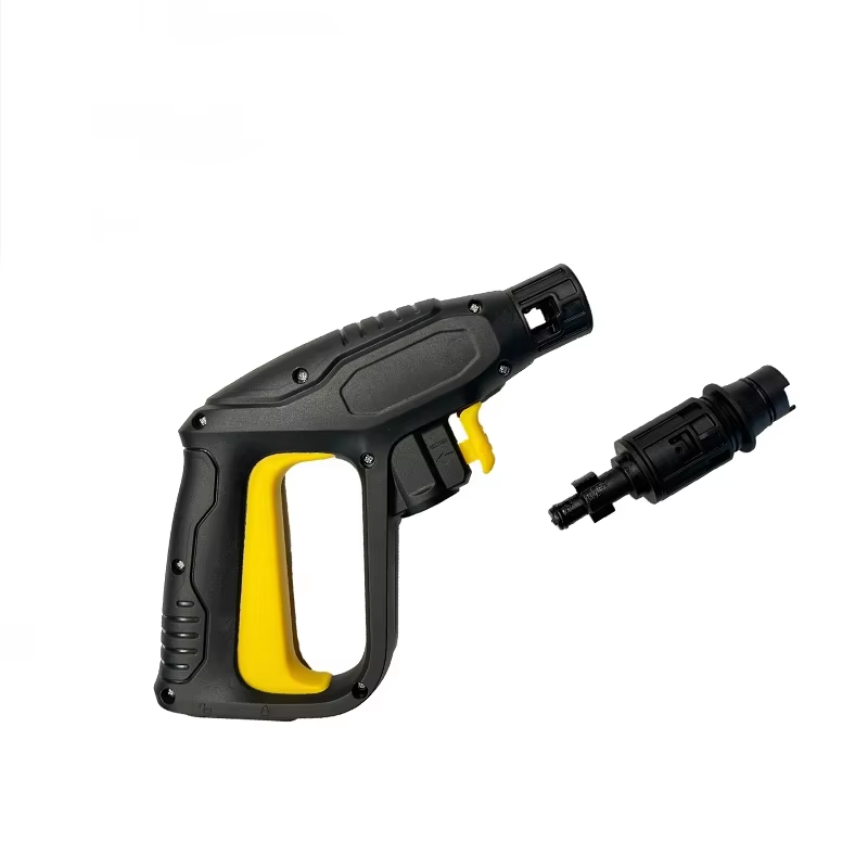 Diese 150-bar-Waschpistole für mehrere Marken verfügt über ein breites Spektrum an Anpassungsmöglichkeiten. Es verfügt über ein präzises Schnittstellendesign, das mit den gängigen Hochdruckreinigungsgeräten auf dem Markt kompatibel ist und kein weiteres Umbauzubehör erfordert. Es kann im angeschlossenen Zustand betrieben werden. Es handelt sich um ein Autowaschgerät. Eine sorgenfreie Lösung für die Aufrüstung und den Austausch von Zubehör. Neben der umfassenden Kompatibilität bietet es auch Designvorteile. Erstens ist der Bogen des Griffs ergonomisch gestaltet und passt sich der Krümmung der menschlichen Handfläche an. Selbst wenn es über einen längeren Zeitraum verwendet wird, ist es nicht leicht, müde zu werden. Gleichzeitig verfügt es über einen auffälligen gelben Auslöseknopf, der für den Bediener leicht zu erkennen ist. Das Feedback des Auslöseknopfes ist klar. Durch die Einstellung des Drucks kann der Zeitpunkt und die Dauer des Wasseraustritts genau gesteuert werden, sodass auch Anfänger problemlos damit beginnen können. Zweitens besteht der Hauptkörper dieser 150-bar-Waschpistole für mehrere Marken aus hochfestem technischem Kunststoff, der eine hervorragende Korrosionsbeständigkeit und Schlagfestigkeit aufweist und nicht leicht zu brechen ist. Auch das Gesamtgewicht ist nach der Optimierung geringer. Gleichzeitig kann der Bediener mit dem flexiblen Hochdruckschlauch den Winkel ganz einfach an die Nutzung anpassen und auch alle Arten von toten Winkeln problemlos reinigen. Schließlich ist das Haupteinsatzgebiet dieser 150-bar-Waschpistole für mehrere Marken die Autoreinigung, sie kann jedoch auch in anderen Bereichen eingesetzt werden, beispielsweise bei der täglichen Hausreinigung, bei der Staub und Blätter auf dem Boden im Freien entfernt werden können. Sie können auch die Intensität des Wasserflusses verringern, um das Haustier zu reinigen, und der niedrige Wasserdruck kann das Haustier nicht reizen.