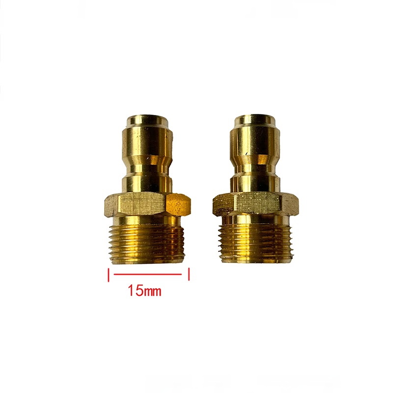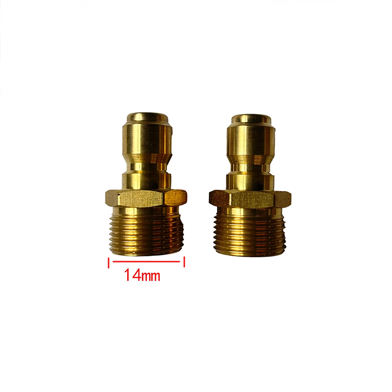 Dieser 3/8 Zoll Quick Big Plug M22×1,5 aus Messing verfügt über ein strenges Größendesign und genaue Daten. Ein Ende hat einen 3/8 Big-Stecker mit einem Durchmesser von 14,9 mm und das andere Ende hat einen M22×1,5-Stecker mit einem Durchmesser von 22 mm. Außerdem stehen zwei Spezifikationen zur Auswahl: Kerndurchmesser: 14 mm und Kerndurchmesser: 15 mm. Die Spezifikation M22×1,5 ist eine gängige Anschlussgröße im Bereich der Hochdruckreinigung, sodass sie mit vielen Reinigungsgeräten der gleichen Spezifikation kombiniert werden kann und durch die Wahl von zwei Öffnungen auch eine Anpassung an unterschiedliche Durchflussanforderungen möglich ist. Gleichzeitig müssen Hochdruckreinigungsarbeiten häufig einer feuchten Umgebung ausgesetzt werden, sodass die hervorragende Korrosionsbeständigkeit dieses 3/8 Zoll Quick Big Plug M22×1,5 aus Messing in vielen rauen Arbeitsumgebungen normal funktionieren kann und Messing eine gute Dehnbarkeit aufweist. Die Integrität des Produkts selbst kann auch unter der Einwirkung von Hochdruckwasserströmen aufrechterhalten werden, und es kann nicht leicht beschädigt werden, was zu Wasserlecks führt, wodurch die Kosten für den Austausch von Geräten gesenkt werden. Zu den üblichen Anwendungsszenarien gehören die Reinigung von Privathaushalten, die Reinigung von Industrieanlagen oder die Reinigung von Außenanlagen. Bei diesen Reinigungsprozessen ermöglicht das Design des Schnellsteckers dem Benutzer eine schnelle Installation oder Demontage. Benutzer können die Verbindungsarbeiten schnell und ohne die Hilfe von Werkzeugen abschließen, was die Arbeit erheblich verbessert. Die Effizienz spart Zeit.