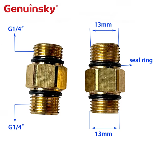 Das Produktmaterial besteht aus Messing, und das Messingmaterial hat Korrosionsbeständigkeit, was die Stabilität des Nutzungsprozesses gewährleisten kann. Daher kann es auch die Nutzungszeit verlängern und die Kosten senken. Die Struktur der Dichtungsring an beiden Enden kann bei Hochdruck-Gebrauchsszenarien einen guten Versiegelungseffekt erzielen und läuft nicht leicht. Die allgemeine Verwendungsmethode lautet: Messingnippel mit beiden Seiten männlichen Gewinden G1/4 wird in die Grenzfläche der Schlauchschnittstelle und die Sprühpistole durch die externen Gewinde G1/4 Zoll an beiden Enden eingeschraubt, um den Hochdruckschlauch und die Hochdrucksprühpistole zu verbinden. Es ist in vielen Nutzungsszenarien zu sehen, wie z. B. Szenarien der Heimnutzung: Autowascharbeit. Wenn Sie das Fahrzeug reinigen, kann das Anschließen des Wasserrohrs und die Sprühpistole den Wasserfluss stabil übertragen. Die Versiegelungseffekte der Dichtungsringstruktur kann Wasserleckage vermeiden und eine Hilfsrolle im Reinigungsprozess spielen. Im Industriefeld: Gerätereinigung. In industriellen Szenarien müssen in der Regel große Maschinen, Geräte und Produktionsleitungen regelmäßig gereinigt werden, um die Produktionssicherheit zu gewährleisten. Durch das Verbinden der Hochdruckreinigungsmaschine und die Düse über dieses Produkt kann sie genau auf das zu reinigende Teil aufgetragen werden.