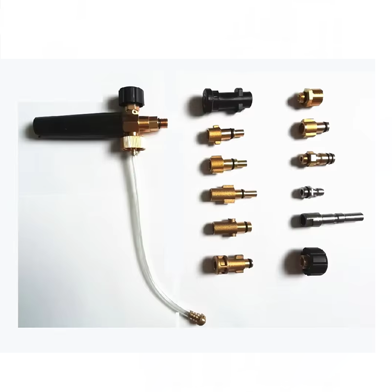 Die Kupferauto -Waschmaschine Schaumlanze hat eine hervorragende Qualität. Das Produkt kann mit Zubehör mit verschiedenen Spezifikationen und Materialien von A bis M ausgestattet werden. Jedes Zubehör hat einen bestimmten Zweck. Mit dem angepassten Karger Nilfisk Lavor Bosch Bd und anderen Serien von Autowaschanlagen kann es die Reinigungsarbeiten vieler Szenarien erfüllen. Diese Schaumlanze besteht aus Kupfermaterialfugen. Das Kupfer hat eine hervorragende Korrosionsbeständigkeit und kann in vielen rauen Arbeitsumgebungen eingesetzt werden. Es hat eine gute Duktilität und Härte, die die Haltbarkeit des Produkts selbst aufrechterhalten und nicht leicht zu brechen ist und Wasserlecks verursachen kann. Die große Kapazität der Flasche des Hauptprodukts kann mehr Seife aufnehmen, die nicht häufig aufgefüllt werden muss. Mit dem Griff können Benutzer es einfach halten und ist nicht einfach zu ermüdet. Mit einer geeigneten Hochdruckscheibe kann es leicht reichlich Schaum erzeugen.