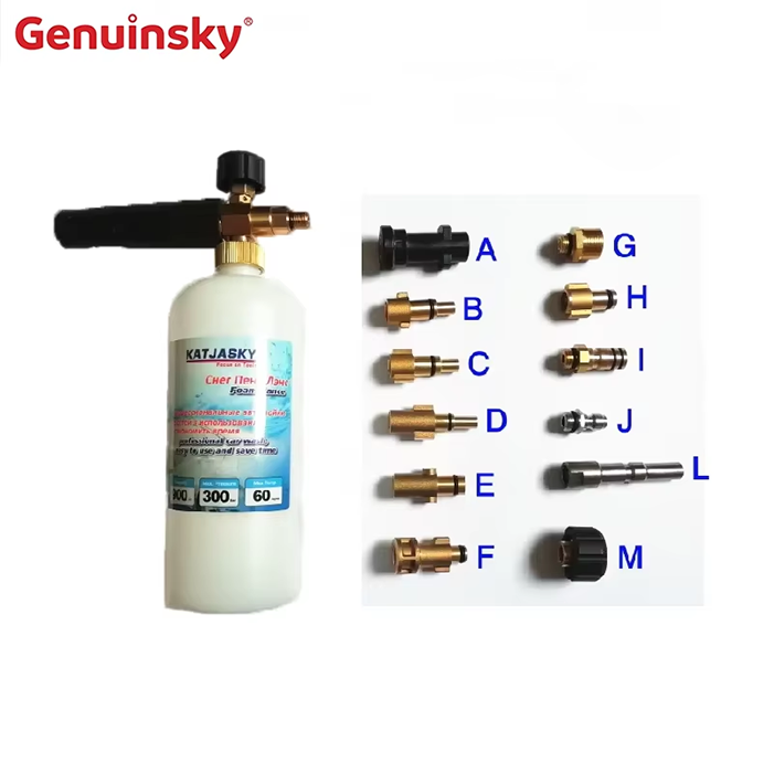 Genuinsky brand copper car washer foam lance, which can be adapted to Karcher nilfisk lavor Bosch BD washer foam generator sn Ow bubble lance foamer.The copper car washer foam lance of Genuinsky brand is compatible with foam generators, snow bubble Lances and foamers of brands such as Karcher, Nilfisk, Lavor, Bosch and BD.