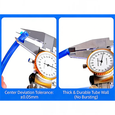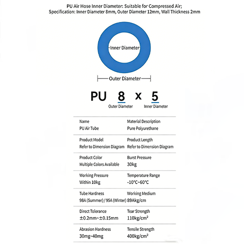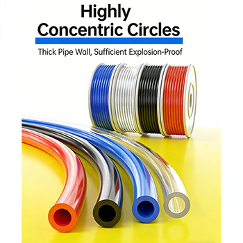 Erstens ist der explosionsgeschützte Luftschlauch aus hochreinem PU aufgrund seiner Kernparameter speziell für die Druckluftübertragung konzipiert. Die Kernspezifikation des Produkts ist PU 8×5 (Innendurchmesser 8 mm, Außendurchmesser 12 mm, Wandstärke 2 mm), das sich an die Schnittstellenanforderungen der meisten pneumatischen Werkzeuge und Automatisierungsgeräte auf dem Markt anpassen kann. Seine eigene hochkonzentrische Struktur kann die stabile Übertragung des Luftstroms gewährleisten und gleichzeitig die Luftröhre selbst besser gegen Explosionen schützen. Im Bereich des Automobilbaus und der Montage elektronischer Komponenten sind die Sicherheits- und Stabilitätsanforderungen an Rohrleitungen relativ hoch, daher ist die Stabilität der Luftröhre sehr wichtig.