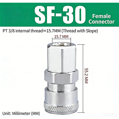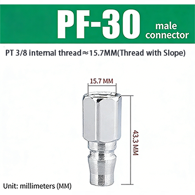 Die C-Typ-Schnellkupplungen der PF-SF-Serie mit JIS-PT-Gewinde verfügen über eine C-Typ-Schnellsteckerstruktur. Die männlichen und weiblichen Köpfe können nach Belieben aufeinander abgestimmt werden und können eingesteckt und angeschlossen werden, was sehr praktisch ist. Die Verbindung verfügt über eine Oberflächengalvanisierungsbehandlung mit einem inneren Kupferkern, der nicht nur korrosionsbeständig, sondern auch verschleißfest ist, was die Haltbarkeit der Verbindung verbessert und die Lebensdauer verlängert.