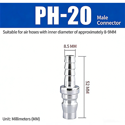 1. PH-20. Es ist für Luftröhren mit einem Innendurchmesser von etwa 8–9 mm geeignet. Der Durchmesser des Verbindungsrohrendes beträgt 8,5 mm und die Gesamtlänge beträgt 52 mm.