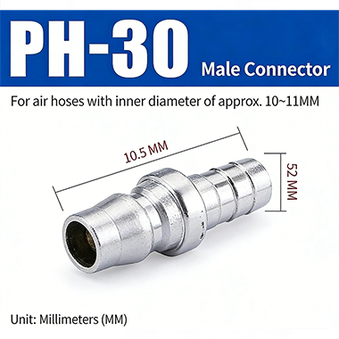 2. PH-30. Es eignet sich für die Luftröhre mit einem Innendurchmesser von etwa 10–11 mm, einem Durchmesser von 10,5 mm am Ende des Konnektors und einer Gesamtlänge von 52 mm.