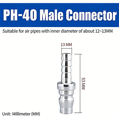 3. PH-40. Es ist für Luftröhren mit einem Innendurchmesser von etwa 12–13 mm geeignet. Der Durchmesser des Gelenkrohrendes beträgt 13 mm und die Gesamtlänge 53 mm.