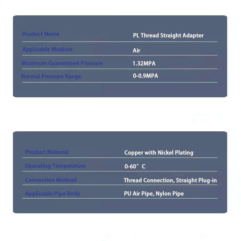 Der gerade Adapter mit PL-Gewinde und das Rohr können nach der Installation sogar um 360° frei gedreht werden, was bedeutet, dass die Einschränkungen der herkömmlichen Gelenkwinkelfixierung aufgehoben werden können. Es kann sich an den komplexen Pipeline-Trend anpassen und die Anwendungsszenarien des Produkts sind umfangreicher. Gleichzeitig verfügt das Produkt über die Toleranz, sich an verschiedene Szenarien anzupassen. Beispielsweise kann es auch in der Hochtemperatur-Produktionslinie eine stabile Leistung aufrechterhalten, da der Toleranzbereich des Produkts selbst im Temperaturbereich von 0–60 °C liegt. Darüber hinaus kann der maximale garantierte Druck 1,32 MPa erreichen, und der normale Arbeitsdruckbereich liegt bei 0–0,9 MPa, was den stabilen Betrieb von Geräten, die Hochdruck-Arbeitsbedingungen erfordern, wie z. B. pneumatische Werkzeuge und automatisierte Zylinder, vollständig abdecken kann.
