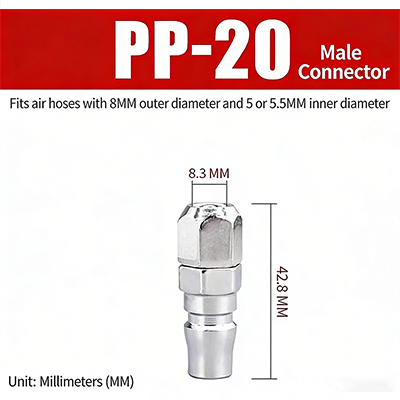 1. PP-20. Es eignet sich für Luftröhren mit einem Außendurchmesser von 8 mm, einem Innendurchmesser von 5 mm oder 5,5 mm, einer oberen Breite von 8,3 mm und einer Gesamtlänge von 42,8 mm.