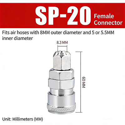 1. SP-20. Geeignet für Luftröhren mit einem Außendurchmesser von 8 mm und einem Innendurchmesser von 5 mm oder 5,5 mm, mit einer oberen Breite von 8,3 mm und einer Gesamtlänge von 60 mm.