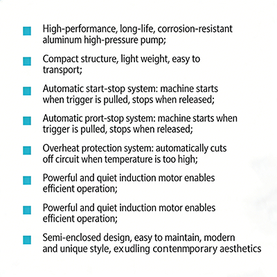 Der tragbare Hochdruckreiniger STG-ROCK-L bietet nicht nur die Vorteile der Tragbarkeit, sondern auch das hervorragende Design und die Leistung des Produkts können seine effiziente Reinigungsleistung voll ausschöpfen. Es ist ein wichtiges Werkzeug für die Hausreinigung und einige Szenarien für kleine Unternehmen.