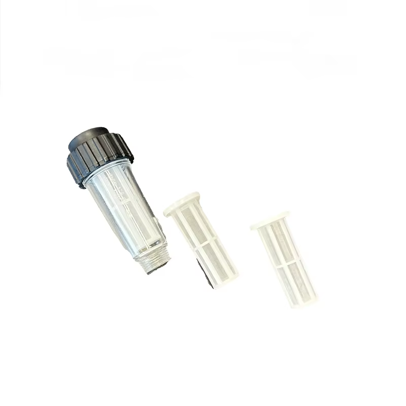 Die beiden Filterkonstruktionen des Produkts können eine abgestufte Filtration erreichen und die Effizienz der Filtration während des Filtrationsprozesses verbessern. Das Material des Filters ist sehr gut und die Filtrationsfähigkeit ist ebenfalls sehr stark. Während des Gebrauchs kann es genau Schmutz und Verunreinigungen im fließenden Wasser filtern. Dieses Design kann auch die Lebensdauer der Maschine länger machen, sodass die Kosten für den Austausch senken können. Die Produktkörper besteht aus transparentem Material, und die transparente Hülle kann es den Benutzern bequem machen, die Verwendung jederzeit zu überprüfen, Verunreinigungen rechtzeitig zu beseitigen und den Filter entsprechend der Verwendung zu ersetzen, damit die Geräte stabil verwendet werden können. Gleichzeitig gibt es oben auch eine schwarze rotierende Abdeckung, die für den Austausch und die Reinigung bequemer ist.